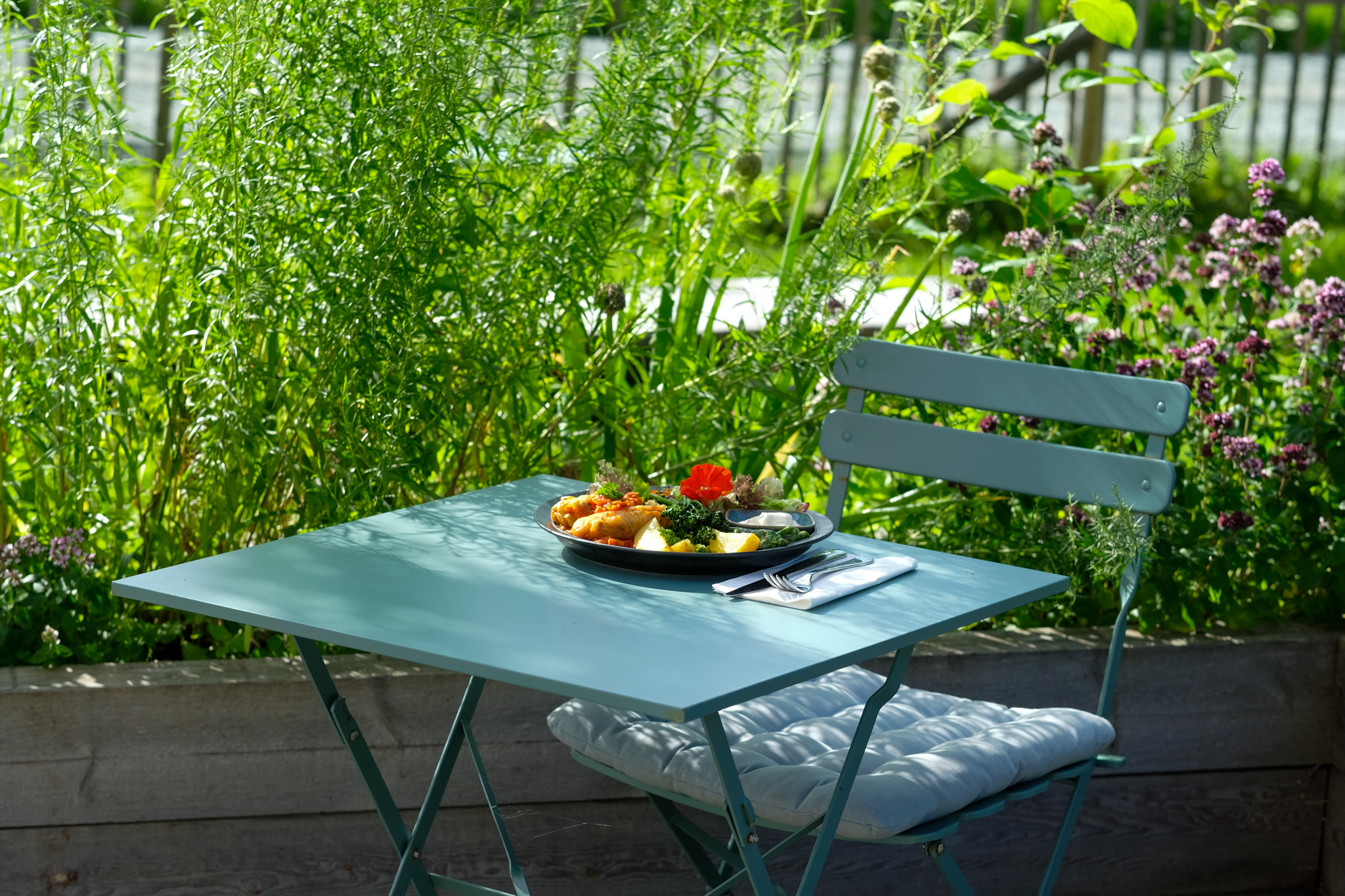 I sesong kommer de fleste råvarer fra vår markedshage.